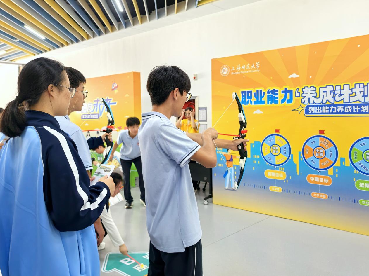 活动在上海师范大学美丽的校园中拉开帷幕。学生们以小组为单位,兴致勃勃地穿梭于各个精心设计的活动摊位之间,参加不同的活动。通过专业的职业兴趣测评和模拟场景,学生们与在校大学生和志愿者交流,深入了解不同职业的工作内容、能力要求与发展前景,认真聆听优秀学长学姐或行业代表的分享,从他们真实的成长故事和奋斗经历中汲取力量。
