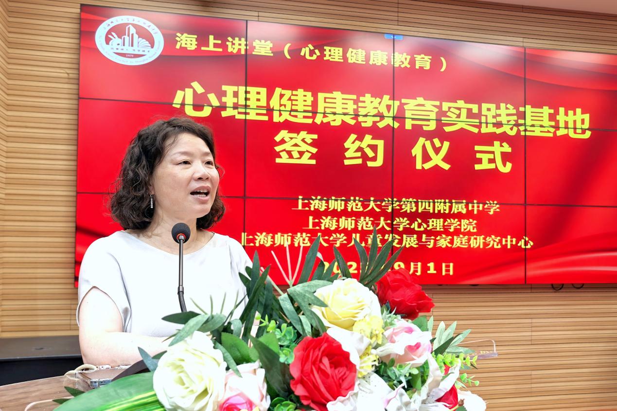 仪式首先由上海师范大学第四附属中学党总支副书记、校长朱银辉,上海师范大学心理学院院长蔡丹分别致辞。两位领导的话语中,既饱含了对学校心理健康教育工作的重视与期待,也清晰阐述了实践基地搭建的意义与目标,让我们对未来的合作充满信心。
