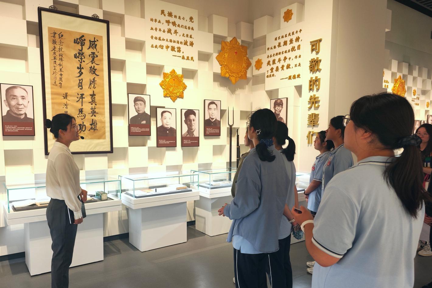 随后,师生们移步至奉贤区烈士事迹陈列馆。这里集中展示了自第一次国内革命战争以来,为民族独立、人民解放和国家富强、人民幸福而英勇献身的奉贤籍及在奉贤牺牲的各位革命先烈的感人事迹。馆内一幅幅珍贵的照片,一行行深情的文字,一幕幕感人的场景,具体而微地呈现了烈士们短暂而壮丽的人生。他们中有的是在枪林弹雨中冲锋陷阵的战斗英雄,有的是在隐蔽战线上默默奉献的地下党员,有的是在社会主义建设时期为保护国家财产和人民生命安全的时代楷模。他们的名字或许不同,经历各异,但都共同展现了忠于理想、忠于人民的赤子之心和视死如归、无私奉献的崇高品格。