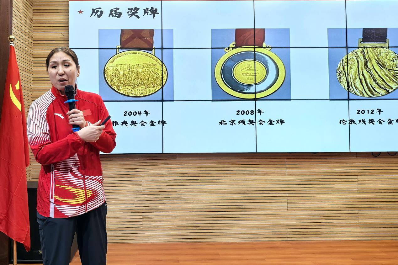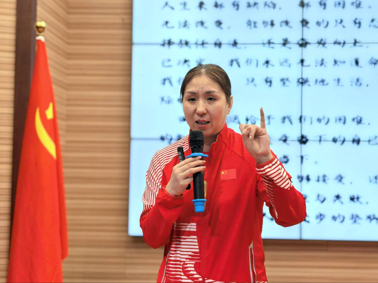 在师生们热切期盼的目光中,章旭飞开始了她的主题分享。她讲述了面对困境时的迷茫与绝望,以及那份不甘被命运定义的倔强——如何日复一日地进行着常人难以想象的艰苦训练,如何与身体的局限和解并将其转化为赛场上的独特优势。她用最朴实的语言,道出了最深刻的人生哲理。她的故事,让“坚韧不拔”、“自强不息”这些词汇,不再是课本上空洞的概念,而是化作了具象的、震撼人心的力量。