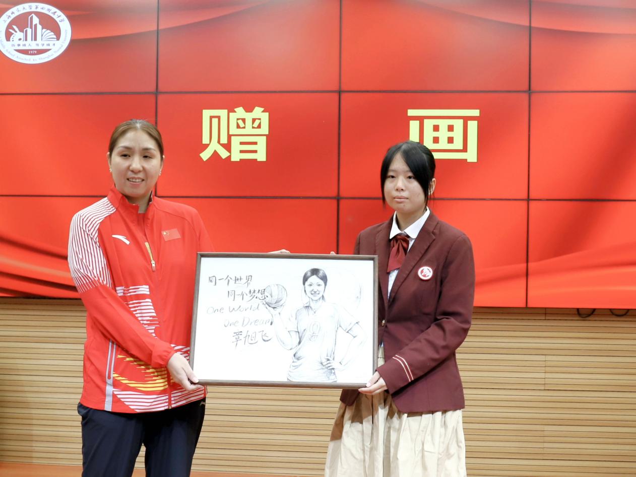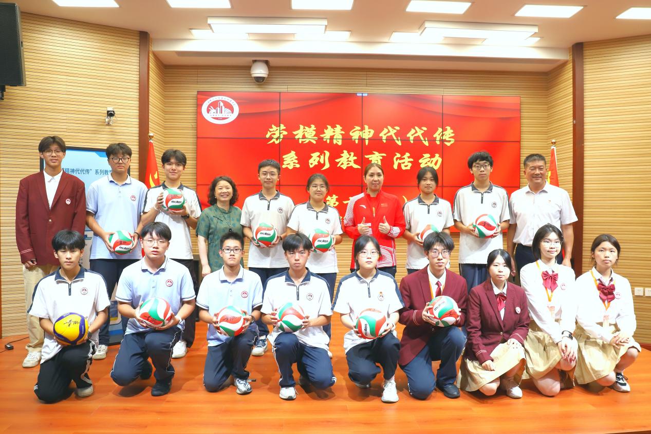 讲座结束后,一个简单而寓意深远的“授球仪式”将活动推向又一个高潮。章旭飞将她亲笔签名的、象征着梦想与力量的排球郑重授予各班学生代表,这一仪式,象征着坚韧不拔的冠军精神与积极向上的体育品格在学校的传承与接续。