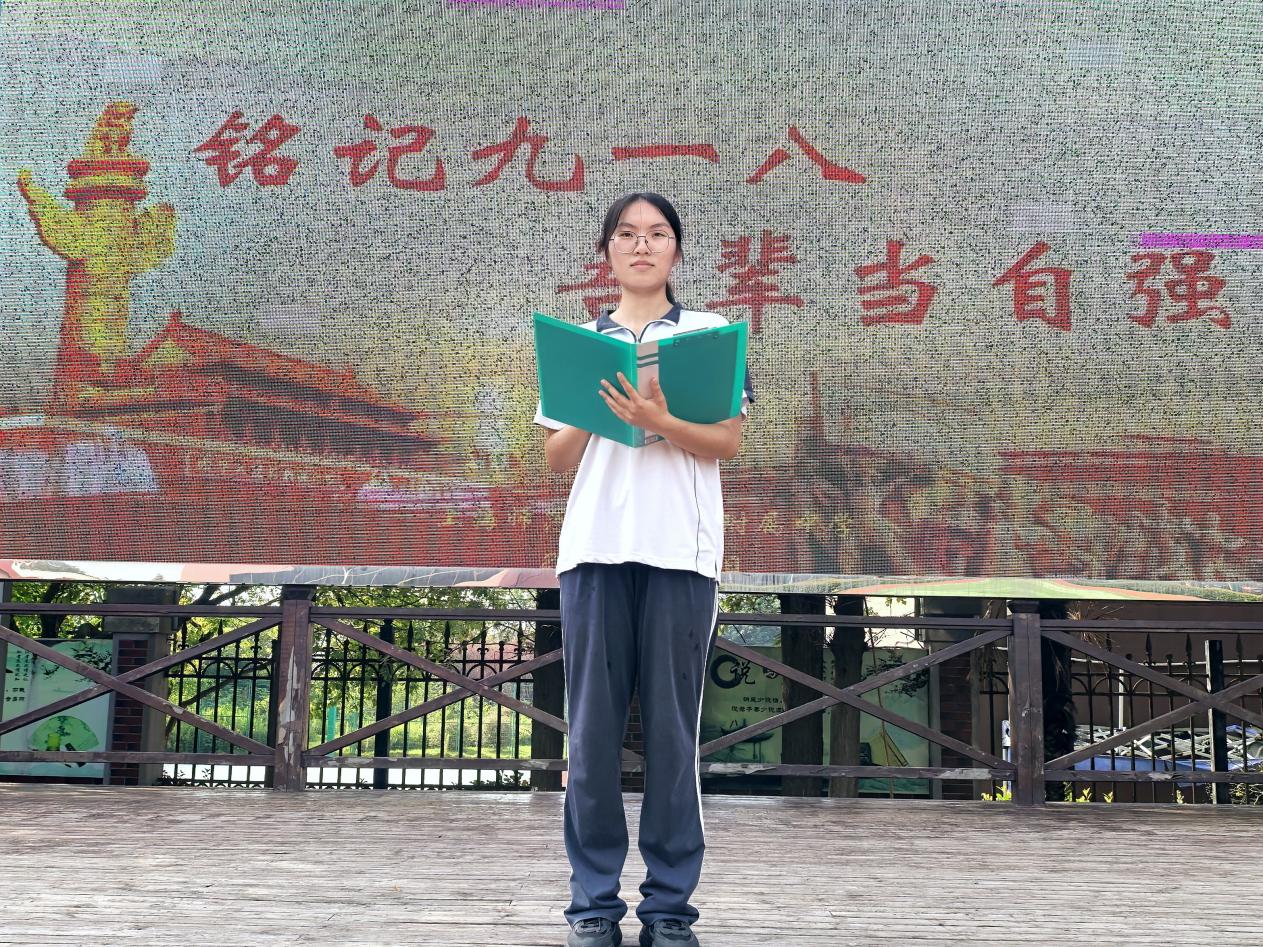 在国旗下,学生代表高三(2)班陈佳颖发表了主题演讲。她首先带领大家回溯了92年前那个沉痛的日子——“九一八事变”,强调这是中华民族苦难历史的深刻一页,是每一位中国人都不应忘记的国耻。她呼吁同学们以史为鉴,深刻认识到国家贫弱、民族涣散所带来的深重灾难,更要珍惜今日来之不易的和平与繁荣。她指出,铭记历史不是为了延续仇恨,而是为了汲取教训,更好地开创未来。作为新时代的青年,自强不息是对历史最好的回应。她号召同学们将爱国之情转化为报国之行,从当下做起,刻苦学习,锤炼本领,将个人理想融入国家发展的伟大征程中。