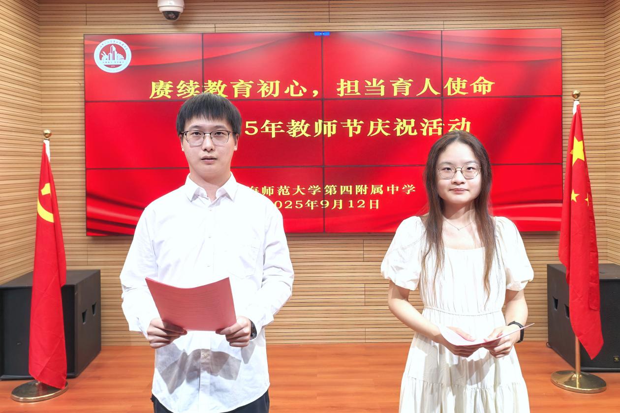 9月10日,是我国第41个教师节。为弘扬尊师重教优良传统,表达对广大教师的崇高敬意和深切感谢,上海师范大学第四附属中学于9月12日举办了以“赓续教育初心,担当育人使命”为主题的庆祝活动。活动简约而庄重,气氛温馨而热烈。