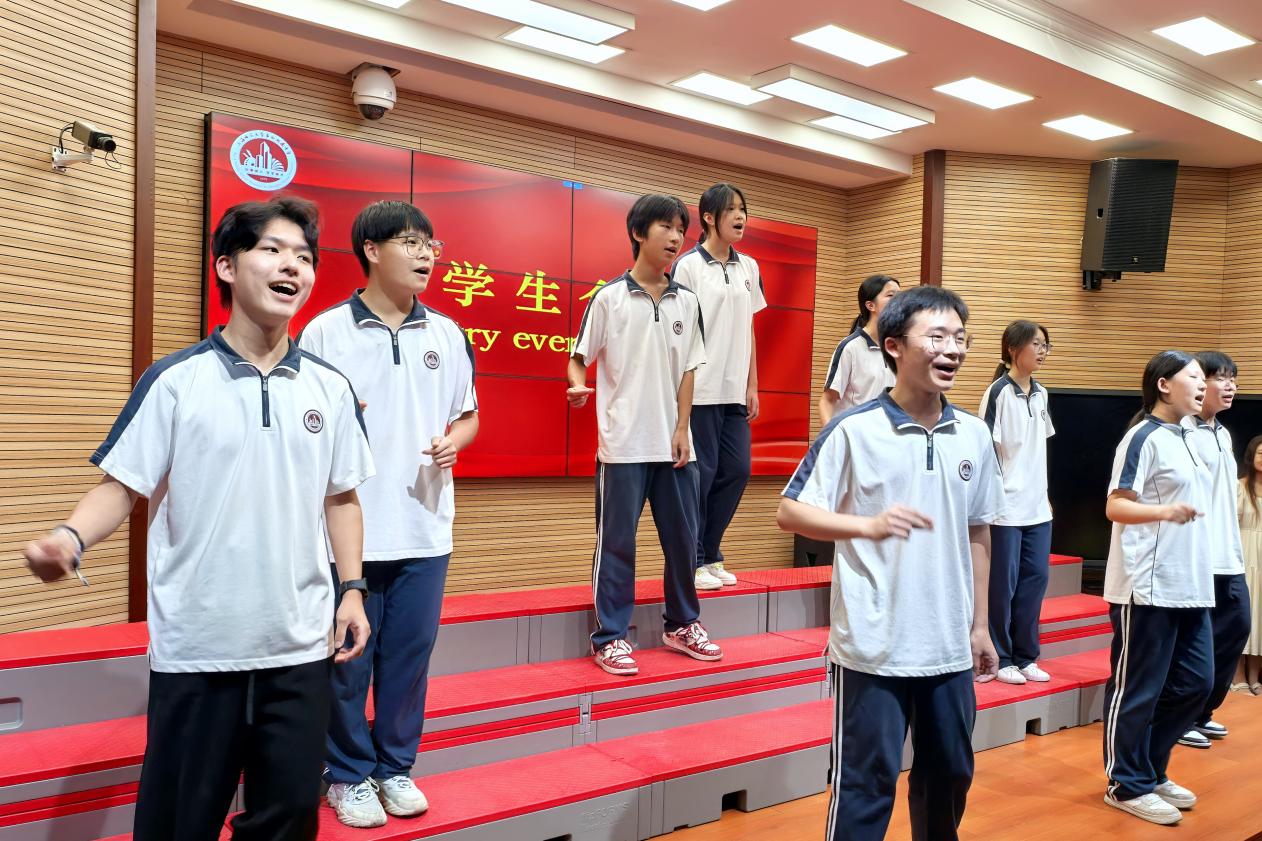 随后,活动进入学生心声环节。视频中,来自不同年级的学生们真诚地表达了对老师的感谢、敬意和温暖回忆。紧接着,学生们表演节目阿卡贝拉《Try Everything》,用歌声传递对老师勇于尝试、不断进取精神的赞美。
