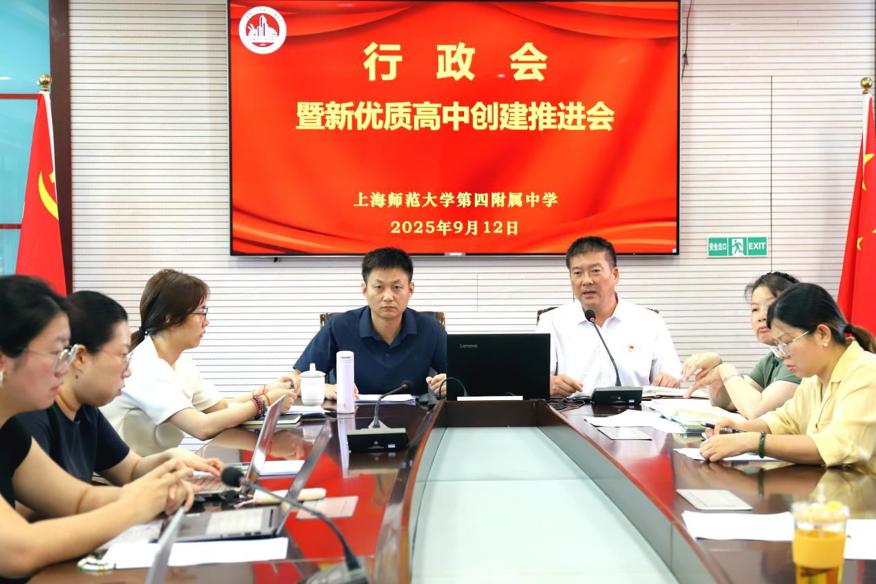 9月12日上午,上海师范大学第四附属中学召开了行政会暨新优质高中创建工作推进会(9月份)。本次会议聚焦新学期工作与新优质高中创建,全面研讨和部署了新学期开局工作以及学期的整体工作安排。学校领导班子及各部门成员齐聚一堂,为学校的发展谋篇布局。