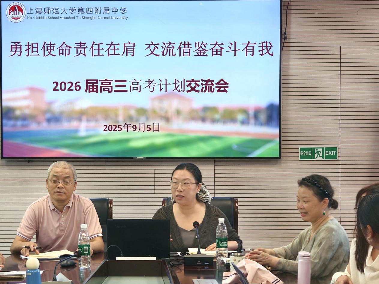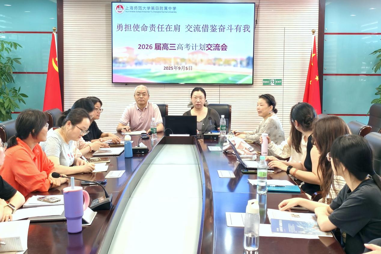 为进一步明确备考目标、优化复习策略、凝聚团队力量,9月5日下午,我校2026届高三高考计划交流会在第一会议室召开。本届高三全体教师齐聚一堂,围绕“勇担使命责任在肩 交流借鉴奋斗有我”的主题,共同研讨新一届高三备考工作计划。会议由教师发展中心教学主管宋蕾主持。