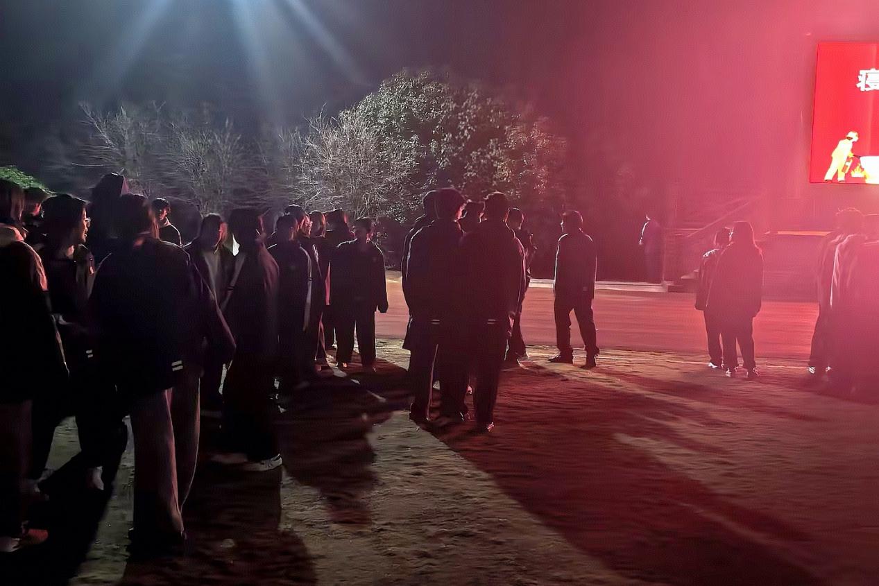 晚上,随着一阵急促的警报声在宿舍区骤然响起,寝室消防逃生演练正式拉开帷幕。演练模拟寝室突发“火情”,校立即启动消防应急预案,负责老师迅速到达指定岗位,组织学生疏散。同学们迅速反应,听从指挥,按照预先规划的逃生路线,快速而有序地从各楼层疏散通道向操场安全区域撤离。在疏散过程中,同学们严格遵守“不推挤、不喧哗、不逆行”的原则,展现了良好的纪律素养。全体住宿生便安全集结完毕。各班班主任第一时间清点人数并逐级上报,确保无一人遗漏。